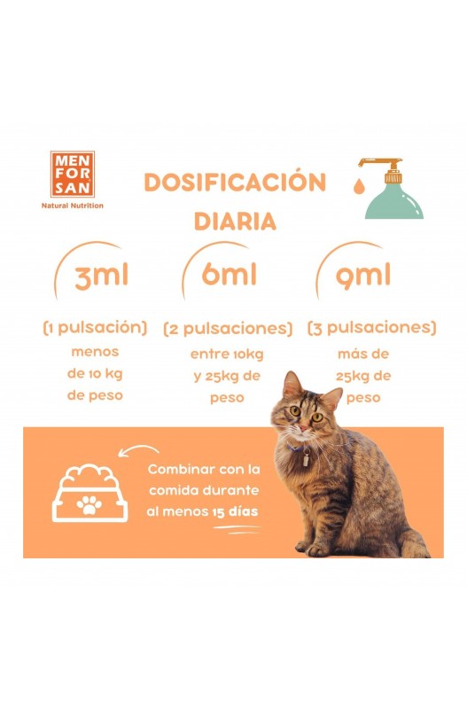 – Perros y gatos < 10 Kg: 1 pulsación de producto (3 ml de producto)