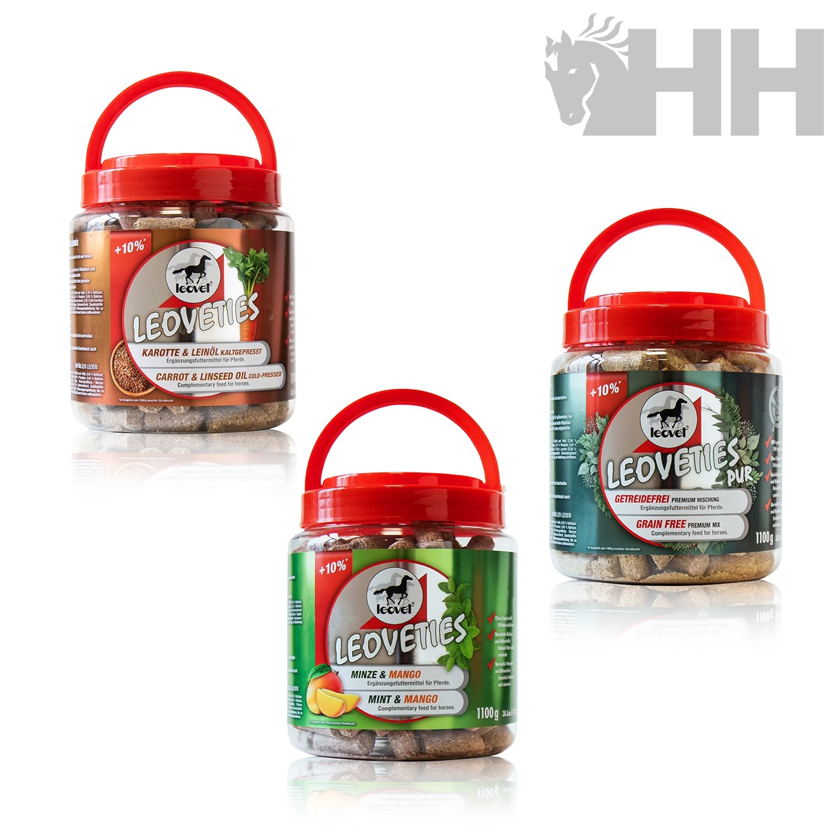 – Sin cereales: Alfalfa: rica en proteínas y fibra. Torta de linaza: favorece la digestión y proporciona un pelaje brillante. Manzana: sabor natural y valiosas vitaminas. Mazorcas de heno: sabrosas y nutritivas, un premio ideal.
