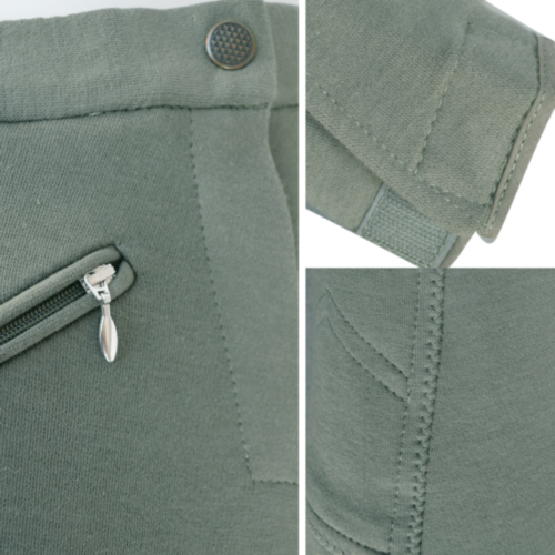 Pantalón con bolsillo frontal con cremallera y ribete. Refuerzos del mismo tejido en el interior de las rodillas.