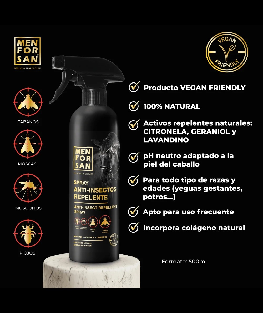 El GERANIOL y el LAVANDINO, repelentes naturales, proporcionan una protección adicional repeliendo todo tipo de insectos voladores (moscas, tábanos, avispas).
