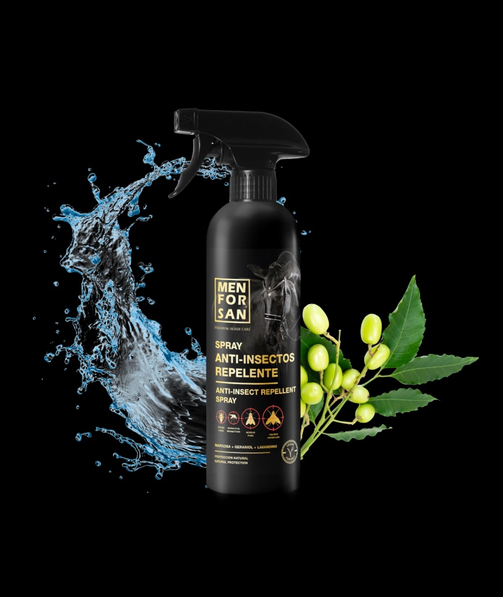 Spray natural para equinos con 3 activos 100% naturales: MARGOSA, GERANIOL y LAVANDINO.