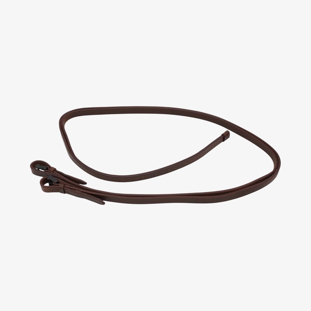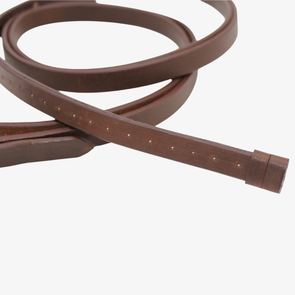 Estas riendas vaqueras están fabricadas en cuero, ofreciendo una gran resistencia y flexibilidad para el trabajo diario o la doma tradicional. Su diseño cerrado con hebillas permite una sujeción segura y firme a la embocadura. Presentan acabado liso. Ideales para jinetes que buscan durabilidad, control y estilo clásico.